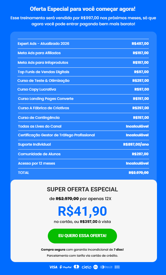 ATENÇÃO: DEVIDO A ALTA DEMANDA, HÁ UMA QUANTIDADE LIMITADA DO EXPERT ADS E PODE ACABAR A QUALQUER MOMENTO!
